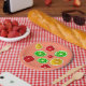 Cute and colourful slices citrus fruit pattern on a almon pink background with illustrations by Sacha Grossel of lemon, pink grapefruit and lime fruit slices in a fruit punch colourful pattern. Summery and bright, this is kitsch and juicy.
