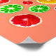 Cute and colourful slices citrus fruit pattern on a almon pink background with illustrations by Sacha Grossel of lemon, pink grapefruit and lime fruit slices in a fruit punch colourful pattern. Summery and bright, this is kitsch and juicy.