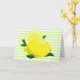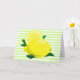 This design features two lemons (one cut in half), on a light green horizontal stripe background.