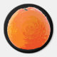 The orange, in the original artwork by ZoeSPEAK on this Magnet, is spinning around, ready to be juiced. The texture of the orange skin is highlighted by the change in colours, from very dark reddish orange to medium then light yellow orange at the edge. A wavy green stem tops the fruit. The Magnet has a black background, but this can be changed to any colour you choose.