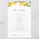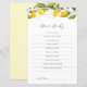 Juicy Yellow Citrus Baby Shower Dear Baby Game Card. With this bright watercolor design, this baby shower collection is the perfect way to celebrate the birth of your new baby.
