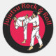 This sticker is decorated with the words "Jujutsu Rock & Roll" encircling two men in combat.