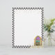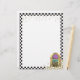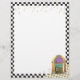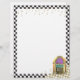Retro jukebox with black and white chequerboard frame and gold music notes stationery.