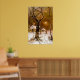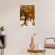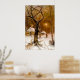A charming winter landscape poster featuring a person walking to a moonlit winter night, painted by the Russian landscape painter Julius Sergius von Klever.