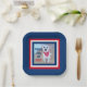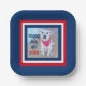 July 4 Red White Blue Striped Photo of Cute Dog Paper Plate