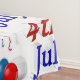 Tablecloth to celebrate America's Independence featuring July 4th in 3D blue and red text and red, white and blue balloons. Tablecloth available in several sizes.