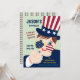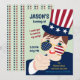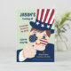 Invite your guests to your boy's Fourth of July Birthday Party with this cute original illustration! It's bright full and colourful! This Independence Day Birthday Party invitation is easily customised for your event by adding your details. In the front, it features a boy inviting friends to his birthday party wearing a top hat with stars and stripes. You'll find rows of red, blue, and white stars on the back of this invitation. This invitation it's ideal for a boy born on this historical date and a Fourth of July-themed party. This illustration was inspired by a patriotic symbol of the United States, Uncle Sam.