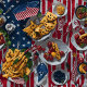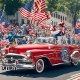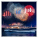 Design an image showcasing a 4th of July fireworks cruise, with a boat full of people enjoying the spectacular display from the water.