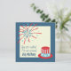 Fun and charming July 4th Fireworks Invitation featuring a bold dark blue border, vibrantly coloured fireworks and a patriotic hat. This great design is a great pick for your next Independence Day party. Easy to customise, simply add the details of your fabulous Fourth of July gathering in the fields provided.