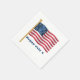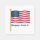 Tableware for 4th of July party with the American flag and Happy July 4 text.