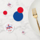 These table confetti pieces are a mix of patriotic red white and blue Happy 4th of July star prints.