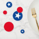 These table confetti pieces are a mix of patriotic red white and blue star prints.