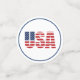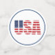 These table confetti pieces are a mix of patriotic red white and blue stars and stripes prints.