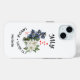 JULY Birth Month Flower Custom Name floral iPhone 15 Case in WHITE with CUSTOMIZABLE TEXT. The pretty design shows a floral display of LARKSPUR and WATER LILY flowers for those with JULY birthdays. You can PERSONALIZE by adding your name at the bottom. This birth month flower iPhone 15 Case would make a great gift for birthdays, Mother's Day, Christmas, and throughout the year. Other botanical and floral birth months available.
