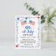 Trendy transparent Red, White, and Blue Stars and Stripes 4th of July Fireworks BBQ Acrylic Party Invitation postcards.