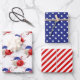 July Fourth Stars Stripes Floral Red White Blue Wrapping Paper Sheet