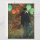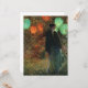 This design features original artwork by the American impressionist painter Childe Hassam (1859–1935). It depicts a beautiful young woman wearing a long green dress. She has brown hair, which is elegantly tied up. The background is painted very impressionistically, but she appears to be standing in a verdant garden with grass and trees. There are also some small balloons with candles inside behind her; they are green and red and light up the entire scene. The original artwork was painted by Childe Hassam in 1898.