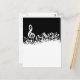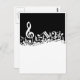 Black top and white bottom of the design with white jumble of musical symbols such as notes and treble clef