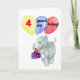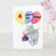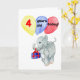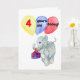 A birthday card for a 4 yr old with a handpainted baby elephant carrying a gift and balloons. 'Happy Birthday' inside.