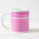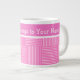 A pretty Jumbo Coffee or Soup mug to personalise, with a pattern of Candy Pink and White basket-weave pattern. Part of the Posh & Painterly 'Candy Floss' collection.