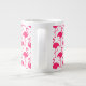 Pink flamingo jumbo coffee and beverage mugs including a cute flamingo all over pattern in pink and white. Drink your favourite coffee, tea, or beverage in style with background colour and a touch of tropical nature.