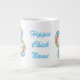 This 20 oz. (ounce) jumbo size mug has a "Hippie Chick" saying written in blue lettering over a customisable text field for a name. Both sides of the mug feature a 70's style flower. A gift that is perfect for you or for any coffee drinker.