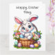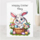 Large Easter Card. Cute Easter Bunny sitting in an Easter Basket. Fun colouring page on the inside!