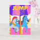 Jump on, take a ride, and celebrate. General congratulations card featuring a carousel with abstracted simplified horses in bright colours. Art, image, and verse copyright © Shoaff Ballanger Studios, 2022.