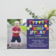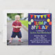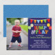 Our colourful Jump & Play Balloons photo style invitation in navy blue and bright primary colours features colourful letters, patterns and balloons and makes a perfect invitation for any child's party with a bounce house, trampoline or jump and play theme.