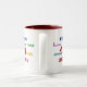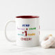 This mug features a silhouette of a cheerleader in the middle of a jump surrounded collage of the words jump, bounce, dance, stunt, tumble and Cheer in blue, green, red and yellow/orange. There is also a placeholder for your text - your name, your cheerleader team or a promotional message.