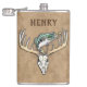 Jumping Bass Large Rack Deer Skull Drinking Flask. Just add yours or the recipients name to personalise it! This is the perfect gift for the hunter and fisherman! This Jumping Bass Deer Skull design was hand drawn and water coloured by ©Tina Hesskew of Fishing Hunting Life.