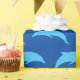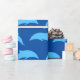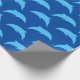 This wrapping paper features a jumping dolphins in a half drop reflection pattern.
