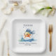 Add a splash of aquatic fun to the party table with these decorative paper plates, featuring a cute jumping fish illustration in a watercolour style. With caption 'Birthday wishes swimming your way' below the picture, the plates can be personalised with a name at the top.