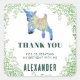 Colourful Watercolor cute jumping baby goat thank you favour bags with foliage and greenery, ideal for a kids birthday party especially farm themed celebrations. The words ‘Thank You for celebrating my birthday with me’ with a custom child’s name. Modern fun colourful typography that’s easy to personalise using the template. Original artwork by artist Catherine Sweetman
