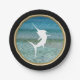 Jumping Marlin Ocean Black and Faux Gold Paper Plate
