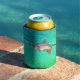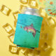 Jumping Rainbow Trout Fly Fishing can cooler. Rainbow trout is jumping out of a water splash after a fly lure.Background is a water ripple with a filter of gradient blue green colours. Rainbow trout design is hand drawn by ©Tina Hesskew of Fishing Hunting Life.