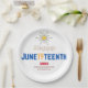 June19teenth 9" Round Paper Plate. Throw a spectacular party with these customisable paper plates to celebrate Juneteenth. Each set of paper plates is printed on durable paper stock and decorated with the June19teenth decor. These plates are perfect for serving dinner, appetizers, or salads. Order these with our paper napkins for a complete set of Juneteenth Celebration tableware that your guests will love! FDA-compliant for food contact safety. Great for serving dinners, lunches, appetizers, or salads, printed in the USA.