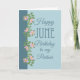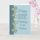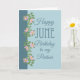 A pretty June Birthday Card for a Partner, with a border of pink Dogroses on a two-tone blue background; part of the Posh & Painterly "Rosy Posy" collection.