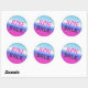 June sale round sticker with a holographic glossy gradient, bright pink colour and black dotted font