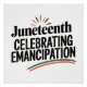 Bold and meaningful design celebrating the historic Juneteenth holiday. Features powerful typography with "Juneteenth Celebrating Emancipation" text, accented by vibrant red sunburst rays and pan-African coloured stripes. Perfect for commemorating this significant day of freedom and reflection. Modern, impactful design that honours African American heritage and independence.