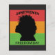 Juneteenth Freedom Day design illustration in Red yellow and green colours with textured Juneteenth Flag Pattern background with African American Girl graphic. Juneteenth the real independence day or freedom day of black African American people. Celebrate liberation and abolition of slavery in United States. June 19, 1865 is the date when the news of abolition of slavery reached the states of texas. Perfect gift idea for friends, boyfriend or girlfriend etc. perfect design for holiday card, sticker, mug, buttons, banner, poster, flyer or tee shirt etc.