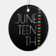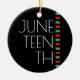 Juneteenth keepsake ornament with a red, black, and green design with white letters.