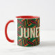 Coffee Mug is shown in a festive Juneteenth art print in celebration.