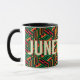 Coffee Mug is shown in a festive Juneteenth art print in celebration.
