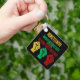 The key chain is made of metal and really sturdy. The flower design is really cheerful. The logo and colors are clear and crisp!