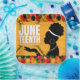 This paper plate is shown in a festive celebration of Juneteenth.
