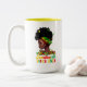 This ceramic coffee mug is shown in a great Juneteenth Vibes Only women art print.