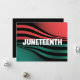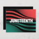 Celebrate Juneteenth with this visually striking design featuring the word "JUNETEENTH" in white. The background showcases dynamic wavy horizontal stripes in red and teal, separated by bold black lines, creating a unique and eye-catching effect. This design is perfect for expressing the spirit of Juneteenth on various items. Show your commemoration and pride with this distinctive design. Perfect for honouring Juneteenth and celebrating freedom. Perfect gift for Juneteenth events and those who appreciate contemporary designs.