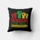 Social justice and Black History word art throw pillow features raised fists with "Juneteenth - the Real Independence Day" text in Pan Africa colours combo on black background