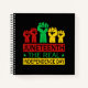 Social justice and Black History word art design features raised fists with "Juneteenth - the Real Independence Day" text in Pan Africa colours combo on black background. Change the inside paper type from sketchbook to ruled, grid or even recipe pages
